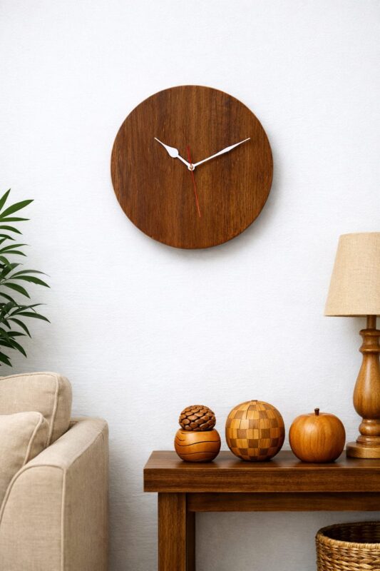 Silent Solid Shisham Wood Wall Clock – Honey Finish