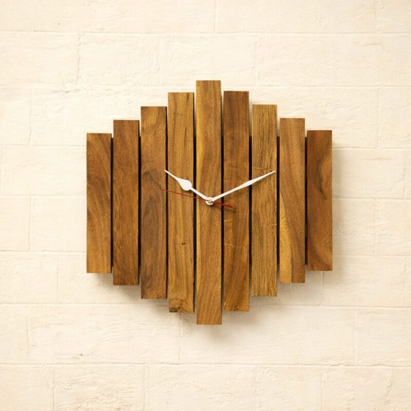 Solid Sheesham Wood Wall Clock – Honey Finish | Wooden