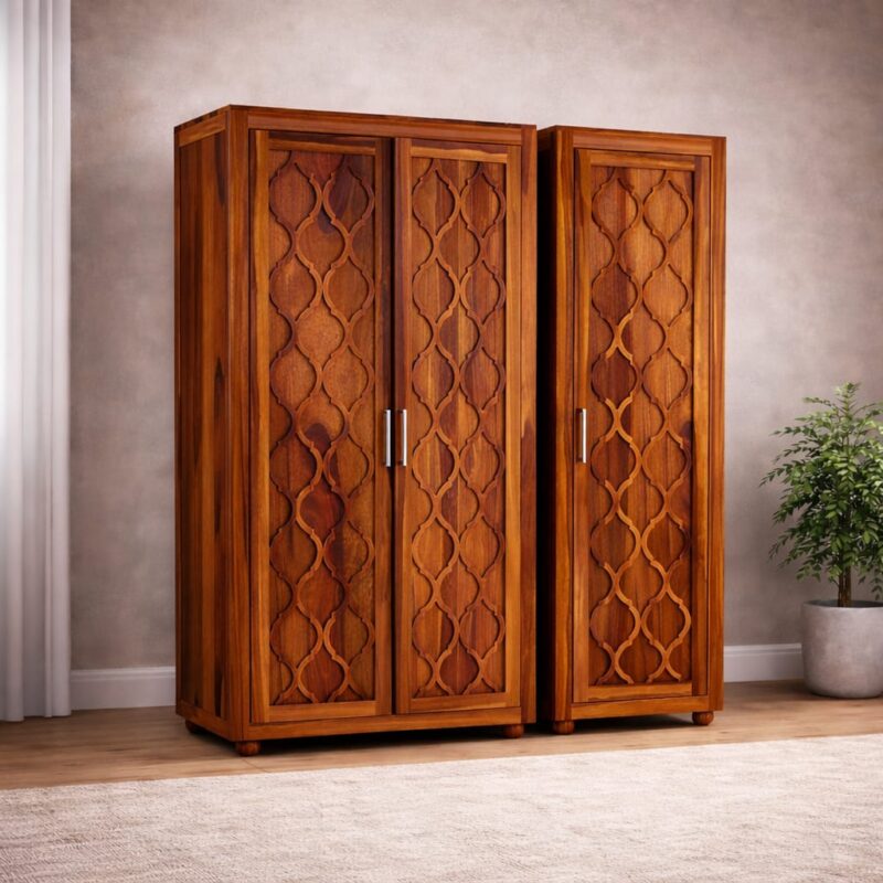 Solid Sheesham Wood 3 Door Wardrobe | Honey Finish