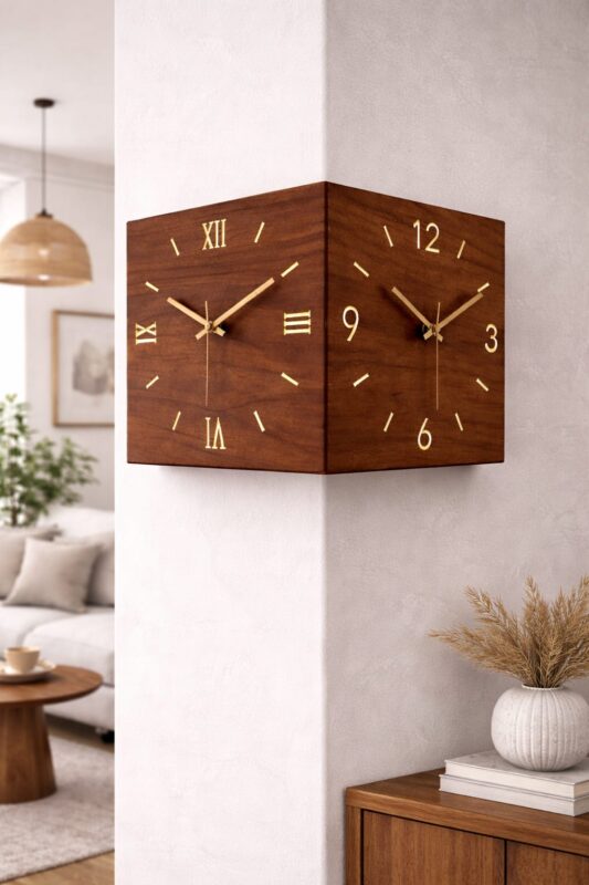 Bring positivity and elegance to your home with this beautifully crafted 12×14 inch Solid Sheesham Wood Swastik Wall Clock. Designed in a traditional Swastik pattern with a rich honey polish finish, this clock adds a spiritual and premium look to your living room, entrance, pooja room, or office.