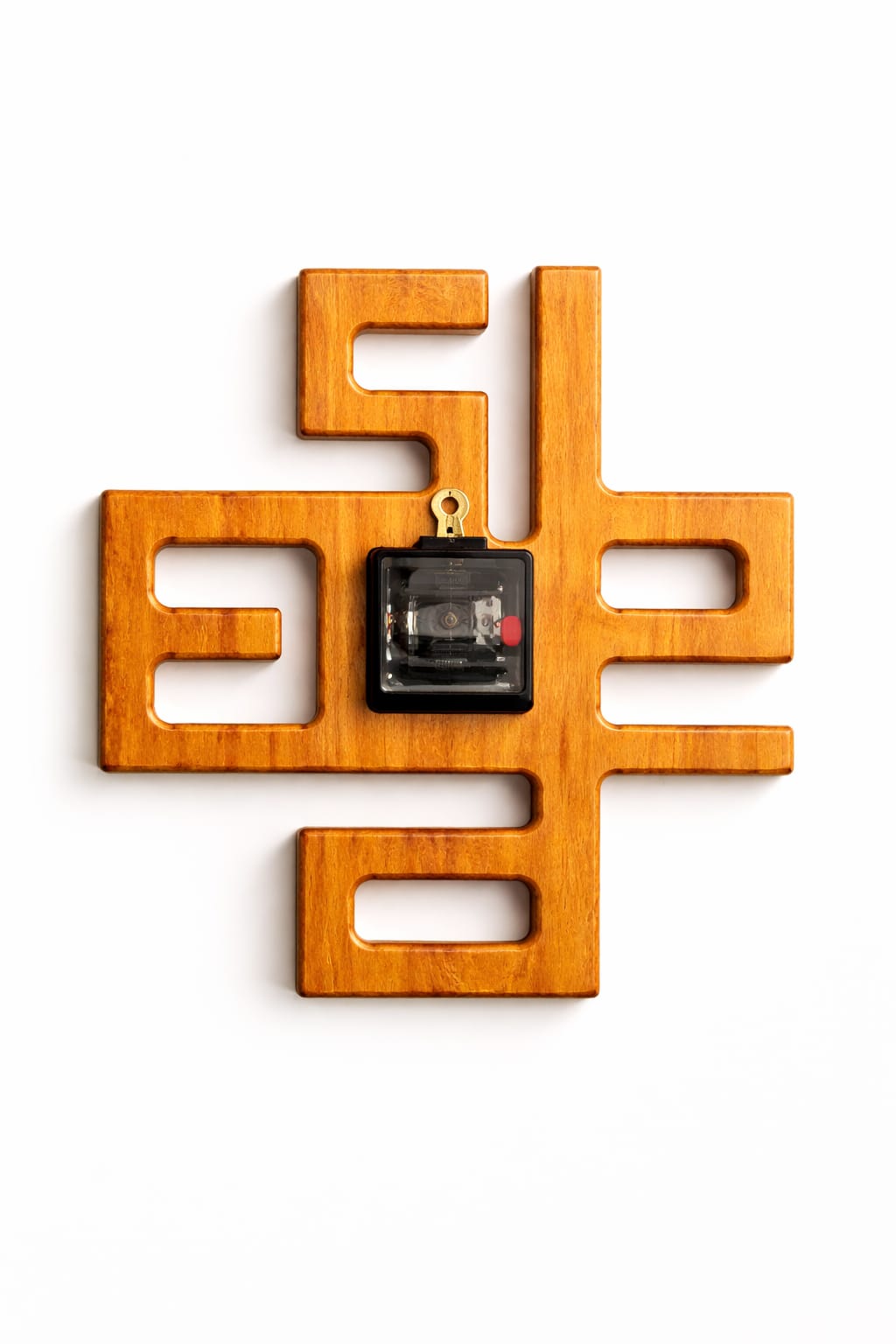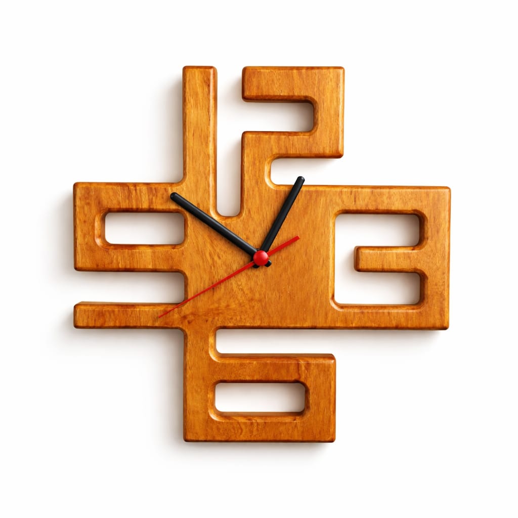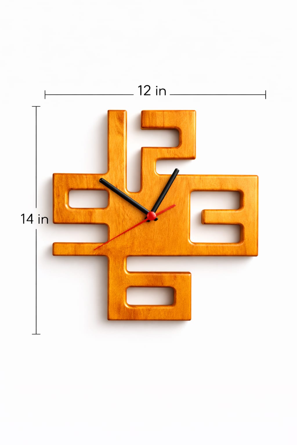 Solid Sheesham Wood Swastik Wall Clock 12×14 Inch – Honey Finish
